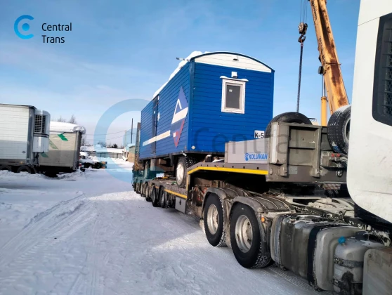 Команда Cetral Trans успешно перевезла бытовки для обустройства места временного пребывания строителей. Доставка была выполнена тралом по направлению г. Омск - г. Петропавловск. Габариты: длина — 5,85 м, ширина — 2,4 м, высота — 2,4 м